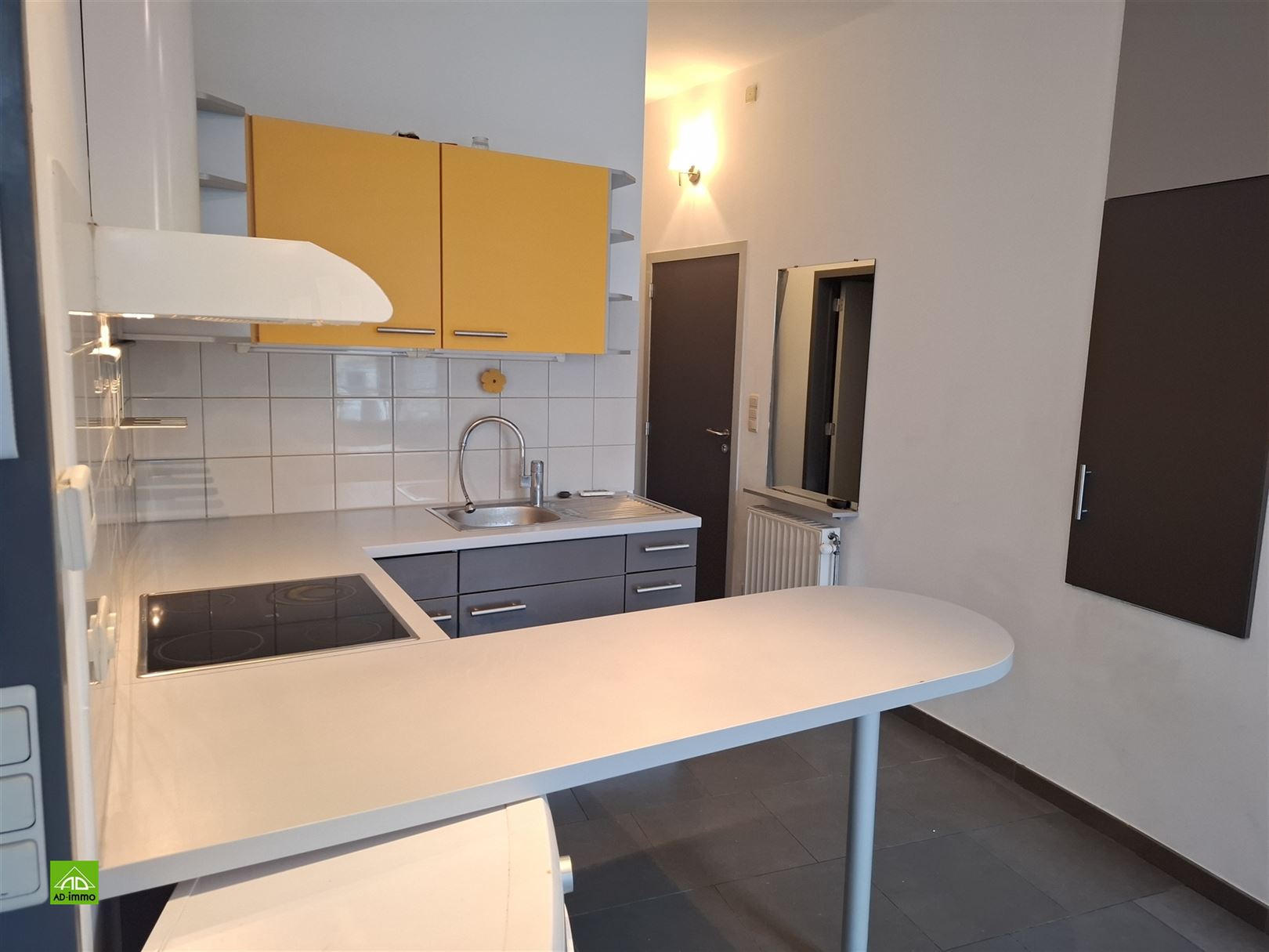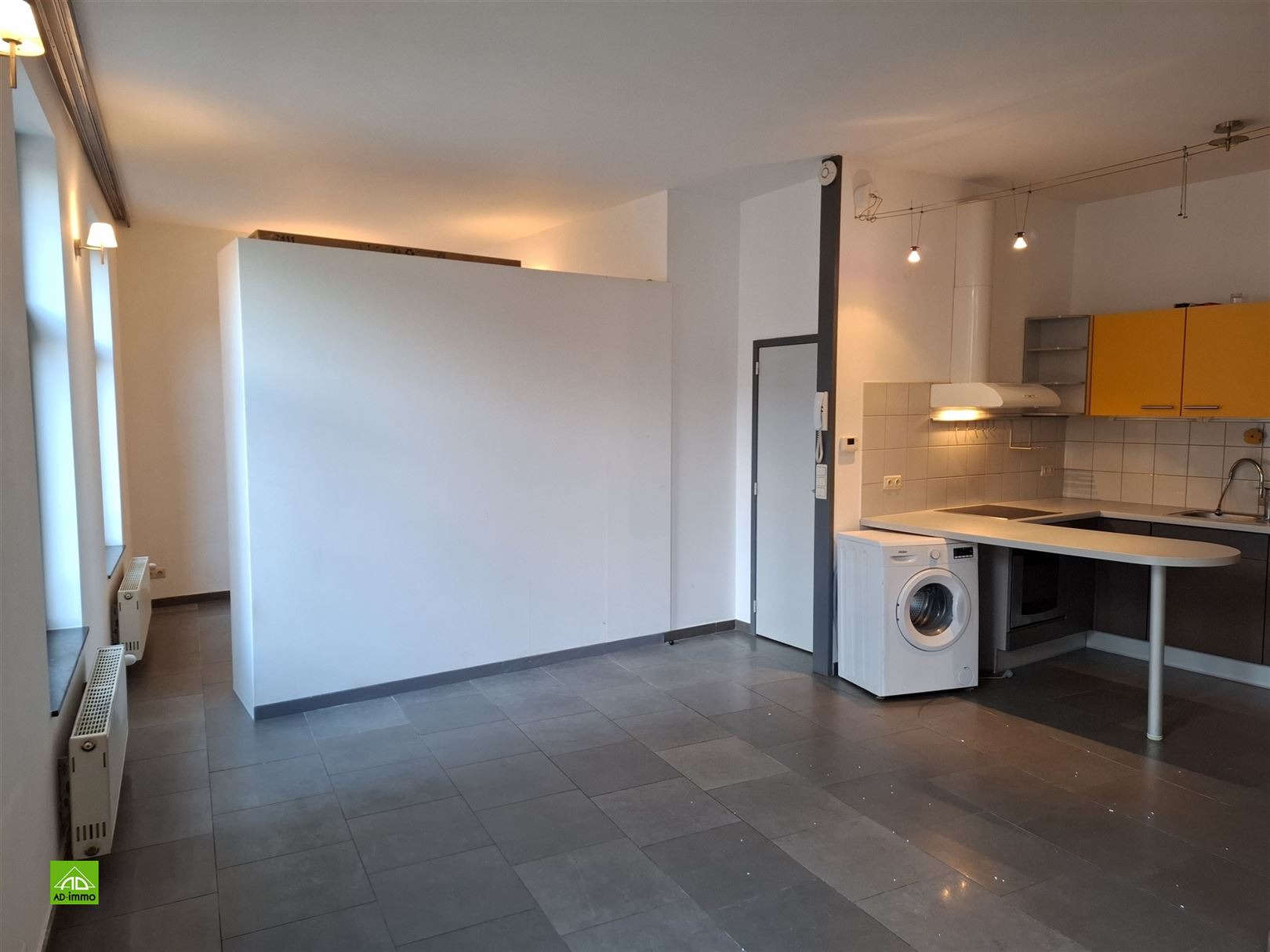 Au coeur du Vieux Namur - Place Marché au Légumes (Place du Vieux...), à proximité de toutes facilités, commerces, bus, de l'université, ... au 1er étage (pas d'ascenseur) d'un bel immeuble rénové, appartement de ± 50 m², idéal pour jeune couple, personne seule .. Composition: séjour de ± 25 m², carrelé, avec sa cuisine américaine équipée (vitro, four, hotte, frigo avec freezer, évier + meubles), 1 chambre de ± 10 m² avec placard/penderie, salle de douche avec meuble lavabo et toilette, buanderie / chaufferie. Autres: chauffage central individuel gaz de ville, châssis pvc double vitrage, vidéophone, ... PEB B : 153 kWh/m².an (EP Totale: 9.704 kWh/an - n° 20230404003605). Provision de charges: 75 € (communs, entretien chaudière et assurance incendie abandon de recours). Etat des lieux par expert à frais partagés. Libre immédiatement - Bail d'un an renouvelable