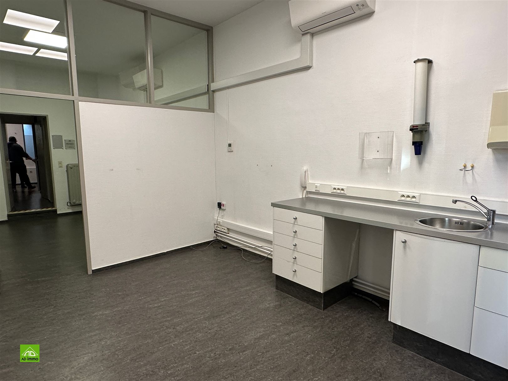 Au centre-ville de Namur, rue Saint-Nicolas, à deux pas du nouveau Palais de Justice, des commerces, des administrations, des bus, de la gare.....situé au rez de chaussée d'une petite résidence, très belle surface de bureau de ± 100 m² + garage de ± 44 m² accessible via la rue des Tanneries. Composition : 2 bureaux avant de ± 15 m² ou grande pièce de ±30 m², couloir donnant accès à 2 toilettes, 1 bureau de 15m², 1 bureau de ± 30 m², un espace réserve / cuisine de ± 14 m², un grand garage avec porte automatique de ± 44 m². Ce rez-de-chaussée est idéal pour toute profession libérale (kiné, dentiste, bureau d'assurance ou d'avocats, maison médicale, fiduciaire,...). Autres : Chauffage central au gaz de ville + climatisation, châssis en PVC double vitrage et Velux avec volets domotique, Possibilité de libre rapidement. Provision charges: 80 € / mois pour le précompte immobilier.