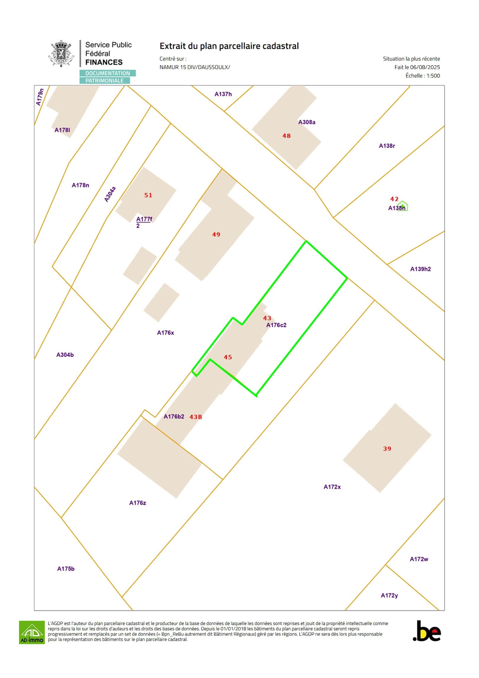 Idéalement située, à proximité des grands axes (E411 et E42), à 10 minutes du centre ville de Namur, maison style bel étage avec grande terrasse, sur 3 a 94 ca, comprenant hall d'entrée, un beau living carrelé de 30 m², cuisine équipée (vitro, hotte, four, frigo), hall de nuit, 2 chambres, salle de bains, buanderie, toilette. Au rez de chaussée: Grand garage (6/4,5m) avec porte automatique, cave, 2ème cave pouvant servir d'atelier +/- 28 m². Autres: chauffage central mazout, bi-horaire, châssis PVC double vitrage, ... Libre à l'acte. Revenu cadastral : 733 € - PEB: E (368 kWh/m².an - EP Totale 52.991 kWh/an - n° 20250728017641
